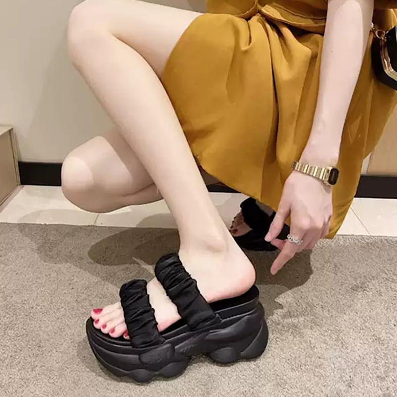 韓国♡とにかく盛れる 7cm ♪ 厚底 ギャザー サンダル ボリュームソール