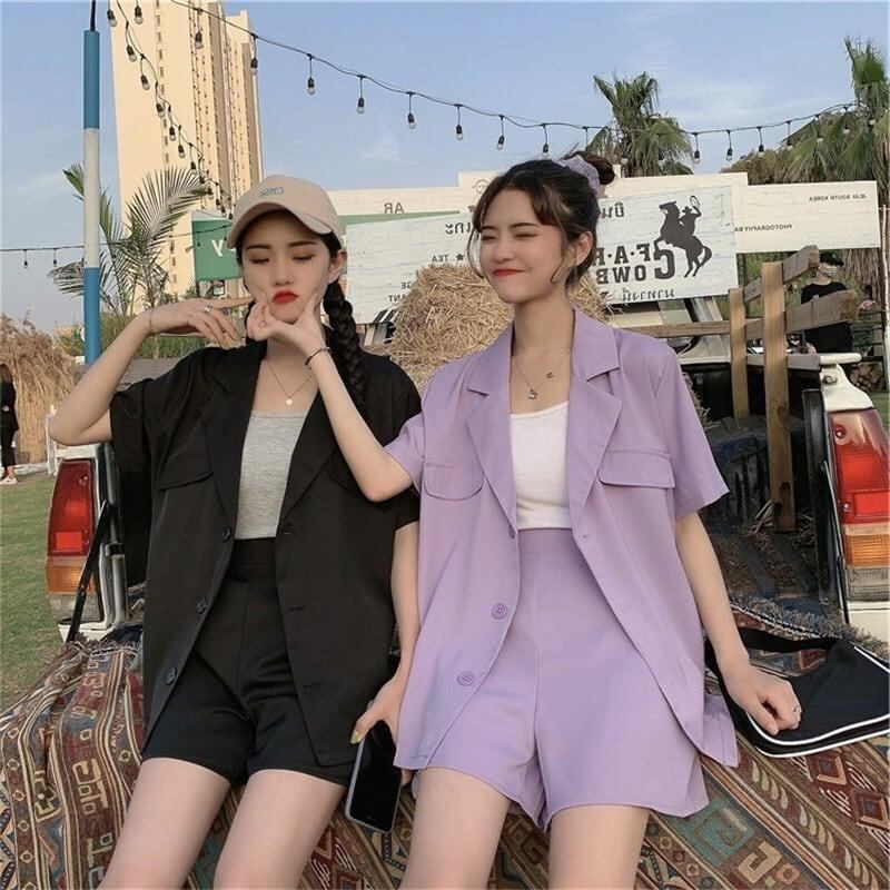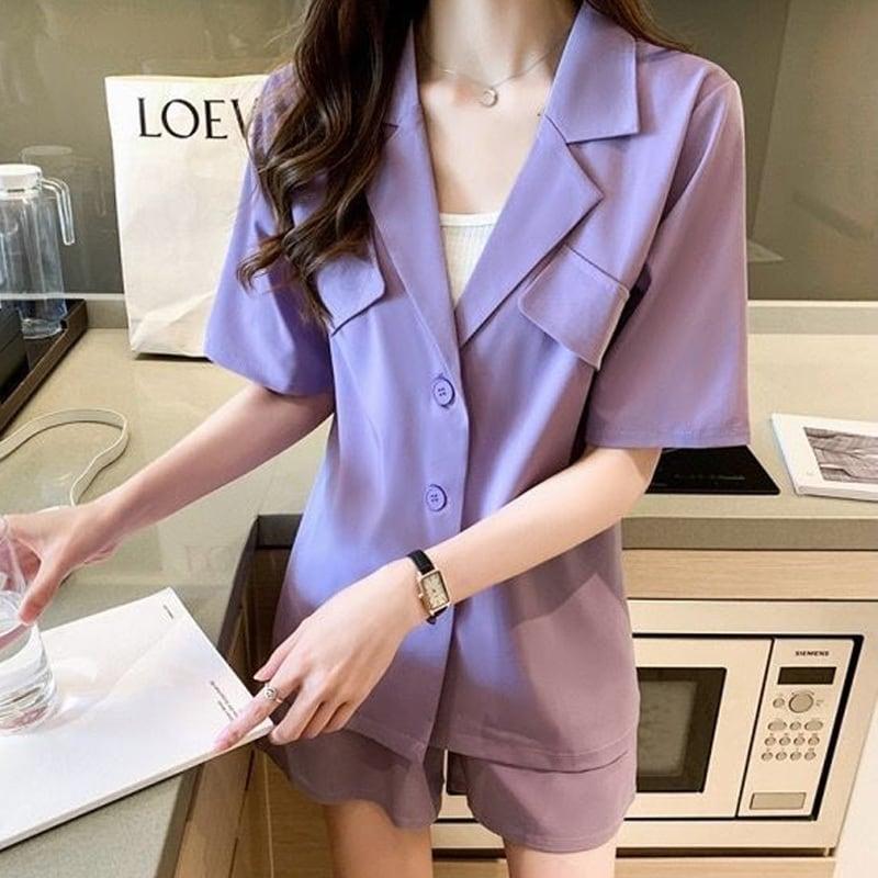 韓国デザイン♡ラベンダー 夏コーデ♪ きれいめ カジュアル セットアップ