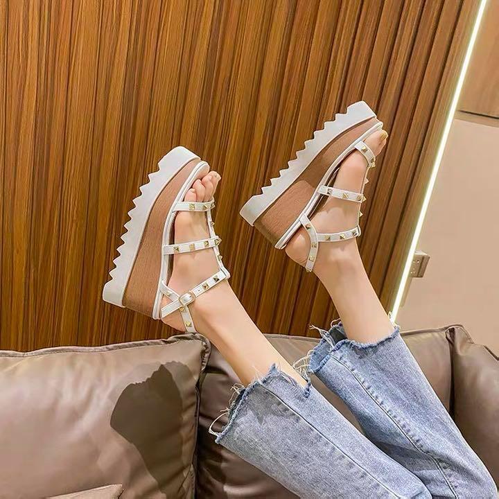 春夏コーデ❤️スタッズ コルク ウェッジソール サンダル 厚底 美脚 靴