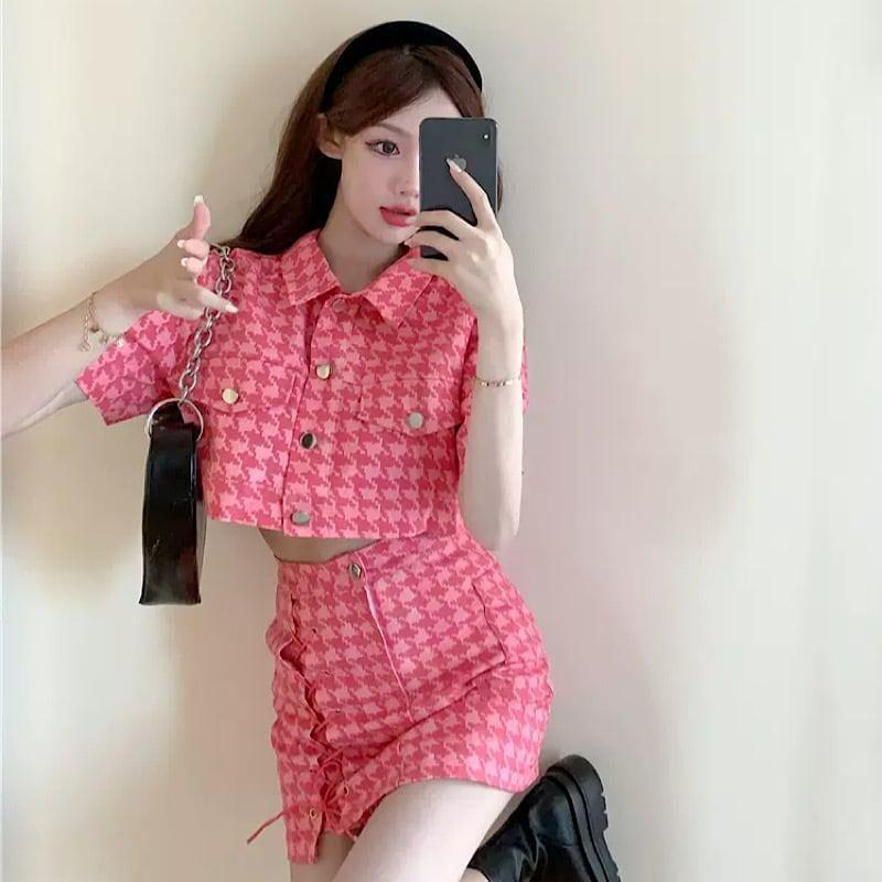 韓国っぽ ♡ デートコーデ ♪ ジャケット ミニスカート セット 千鳥 柄