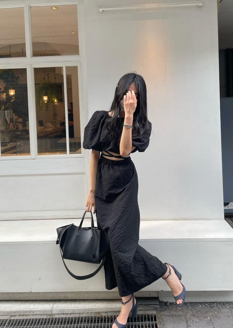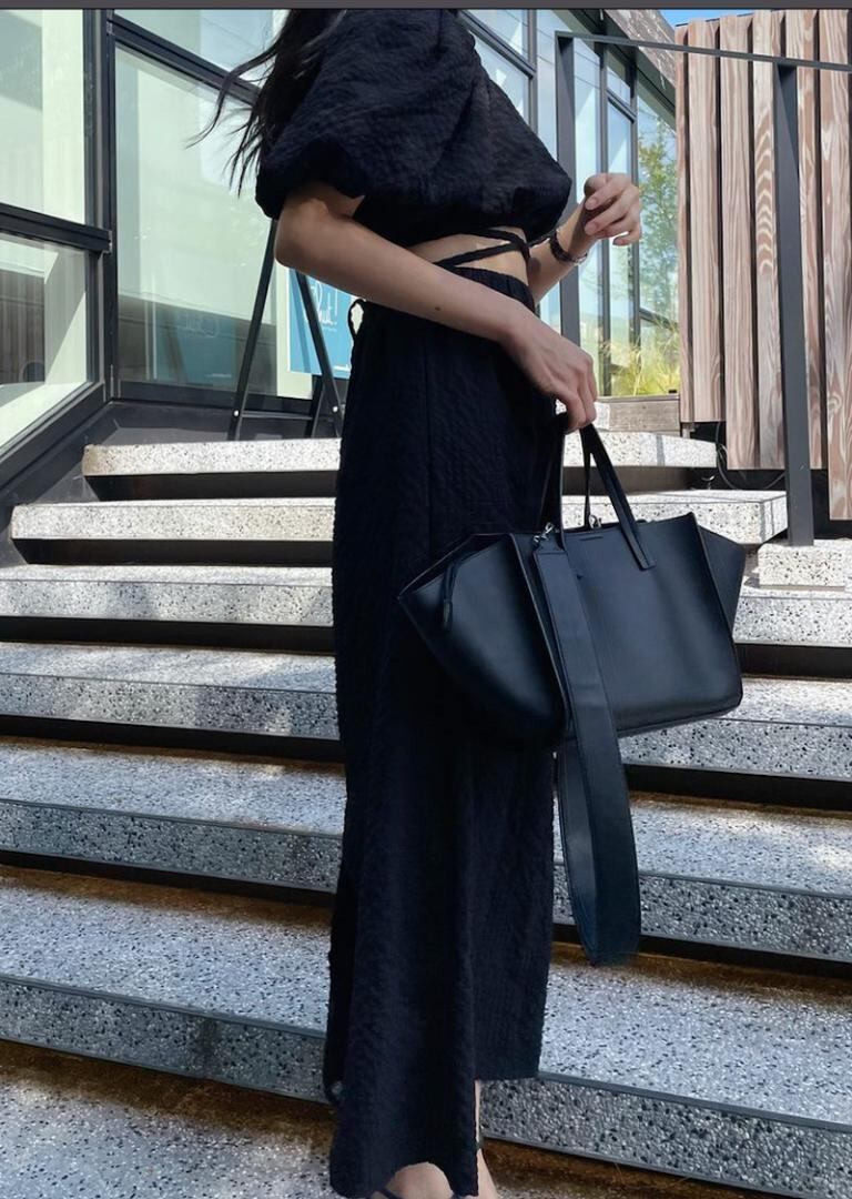 ☆★ 新品入荷 韓国デザイン♡女っぽ♡ ワッシャー クロス セットアップ モノクロ ロング★☆