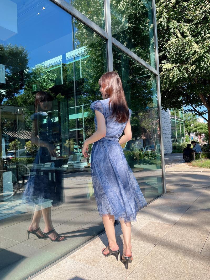 韓国デザイン♡綺麗め♡ 水彩 ディープ シフォン ワンピース ふんわり 美しい