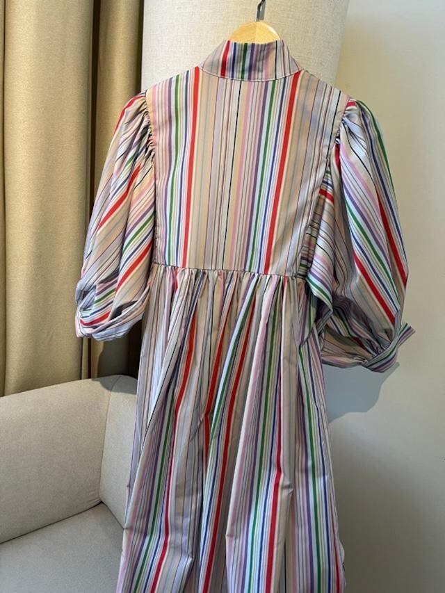 カラフルな色味のピンストライプワンピース♡