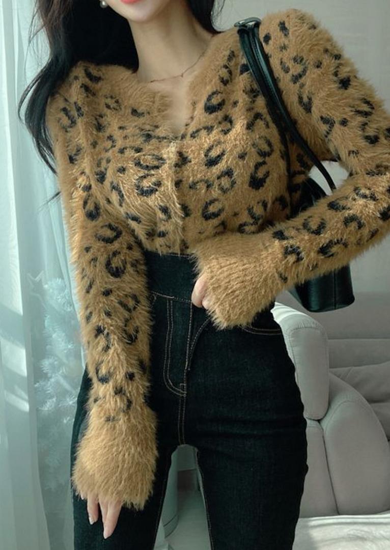 ☆★ 新品入荷 韓国デザイン♡一目惚れ 大人綺麗め女子 レオパード柄 シャギーニット トップス★☆