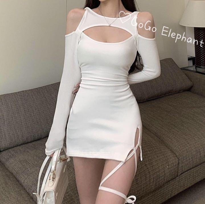 ☆★ 新品入荷 韓国デザイン♡セクシー アシメカットシ ョルダー カット ワンピース ドレス ★☆