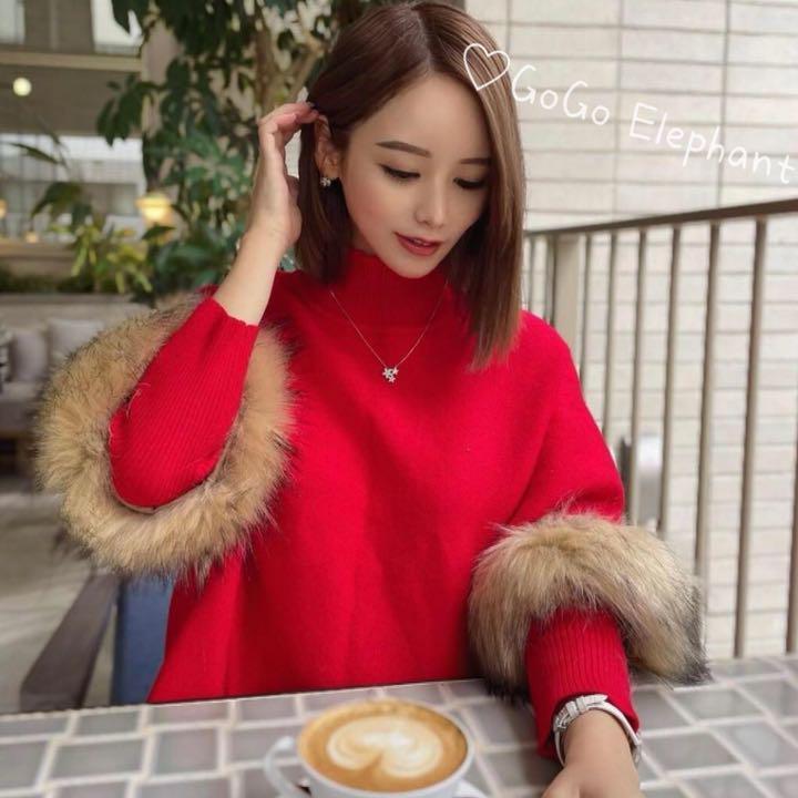 ☆★ 新品入荷 韓国デザイン♡上品 エコファー ポンチョニット ワンピース トップス レディース★☆