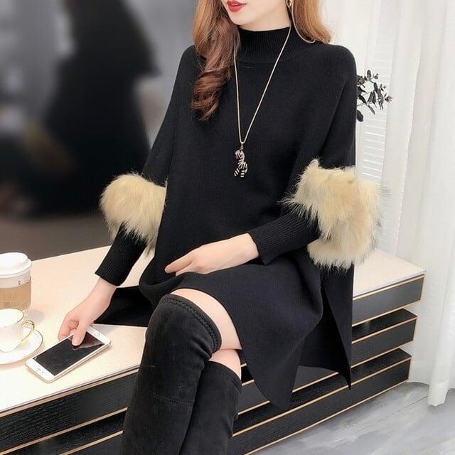 韓国デザイン♡上品 エコファー ポンチョニット ワンピース トップス レディース
