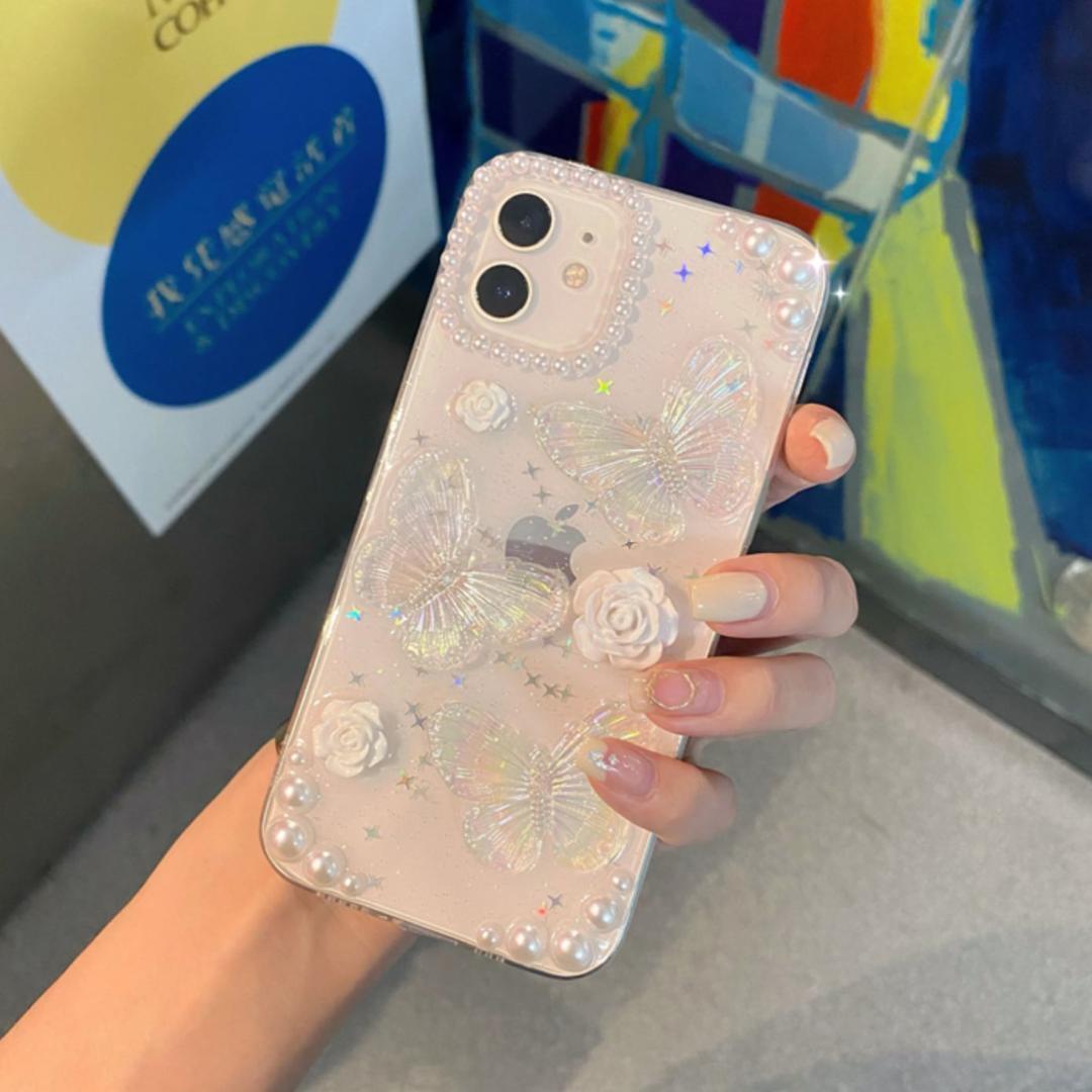 韓国♡デコ きらきら パール バタフライデザイン♪ クリア iphoneケース