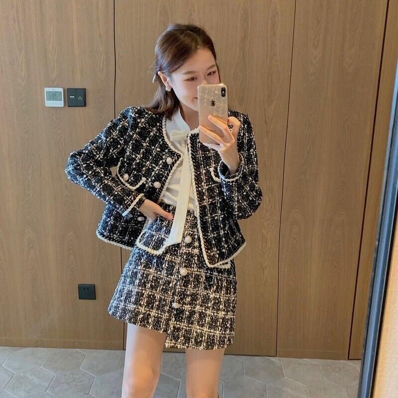 韓国デザインのツイードジャケットとスカートのセットアップ♪
