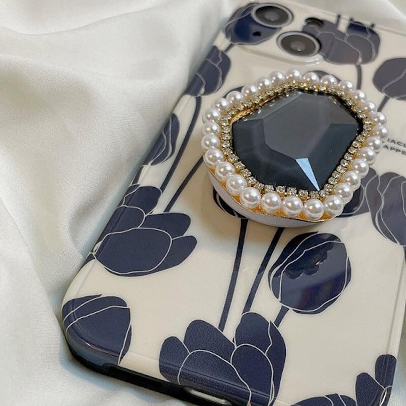 韓国デザイン♡綺麗め パールソケット付き ♪ チューリップ柄 iphoneケース