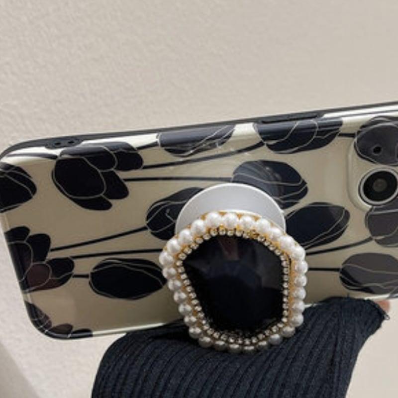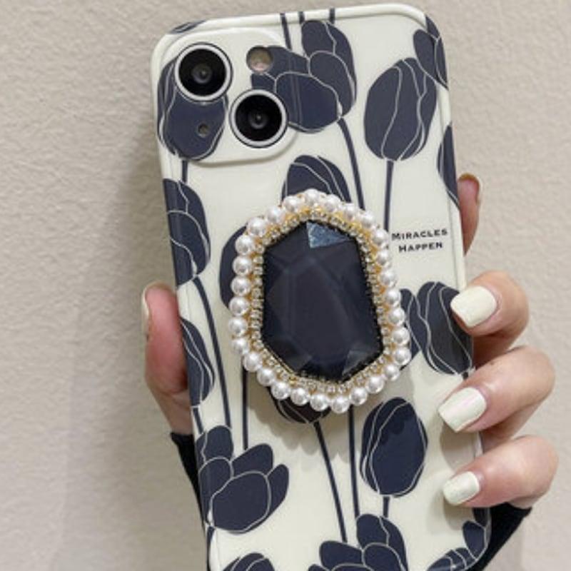 ☆★ 新品入荷 韓国デザイン♡綺麗め パールソケット付き ♪ チューリップ柄 iphoneケース エレガント