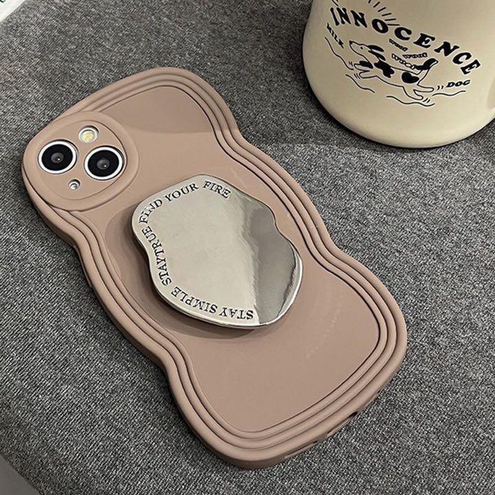韓国っぽ♡立体的♡mirror wave grip付 iPhoneケース 高級感