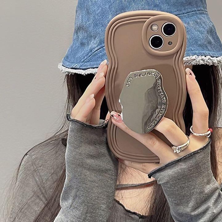 ☆★ 韓国っぽ♡立体的♡mirror wave grip付 iPhoneケース 高級感