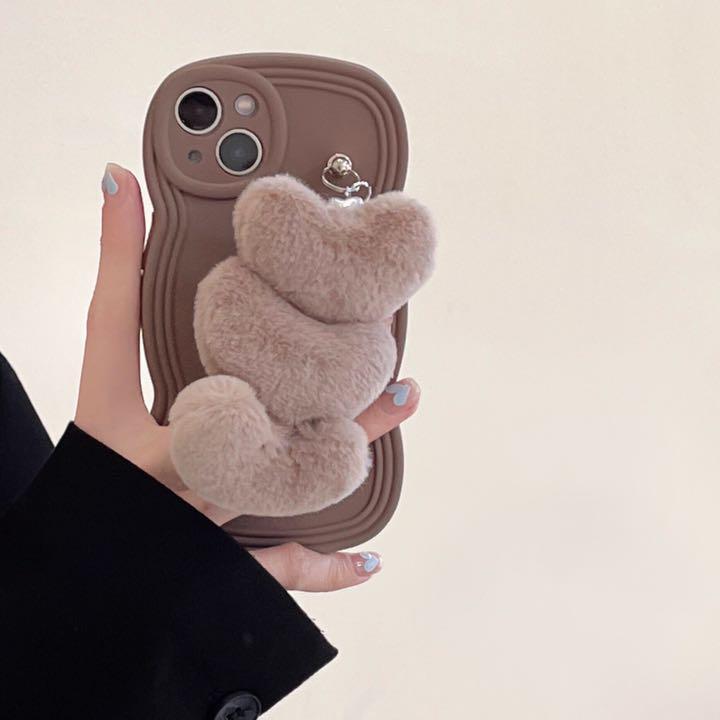 韓国♡可愛い もこもこ ハートチェーン付き♪ パステルカラー iphoneケース