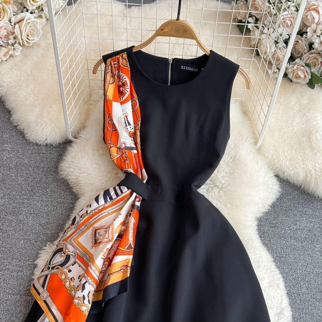 ☆★ 新品入荷 綺麗めコーデ❤️ロングワンピース レディース ノースリーブ スカーフ柄 ドレス ★☆