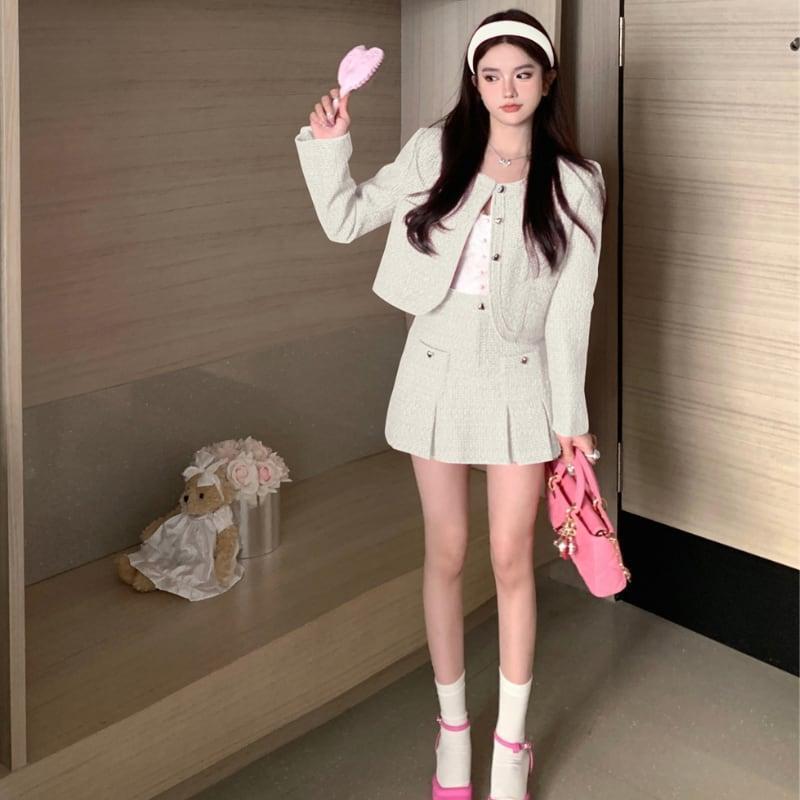 ☆★ 新品入荷 韓国♡ レディライクなセットアップ♪ ツイード風 ジャケット プリーツスカート★☆