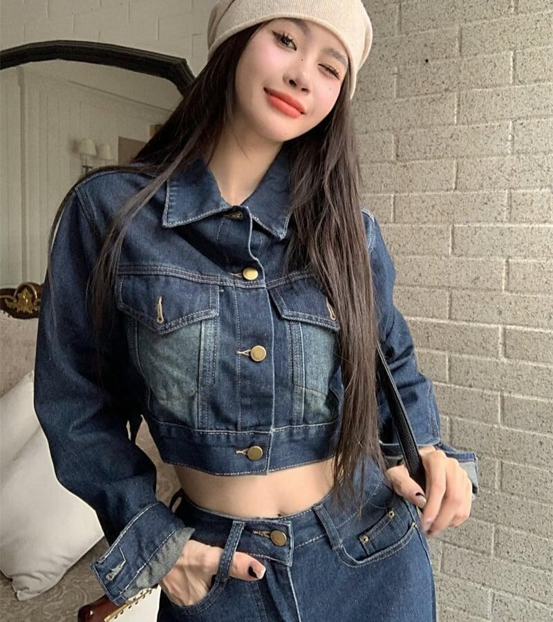 韓国♡おしゃれ♪ クロップド丈 デニムジャケット パンツ セットアップ 古着風