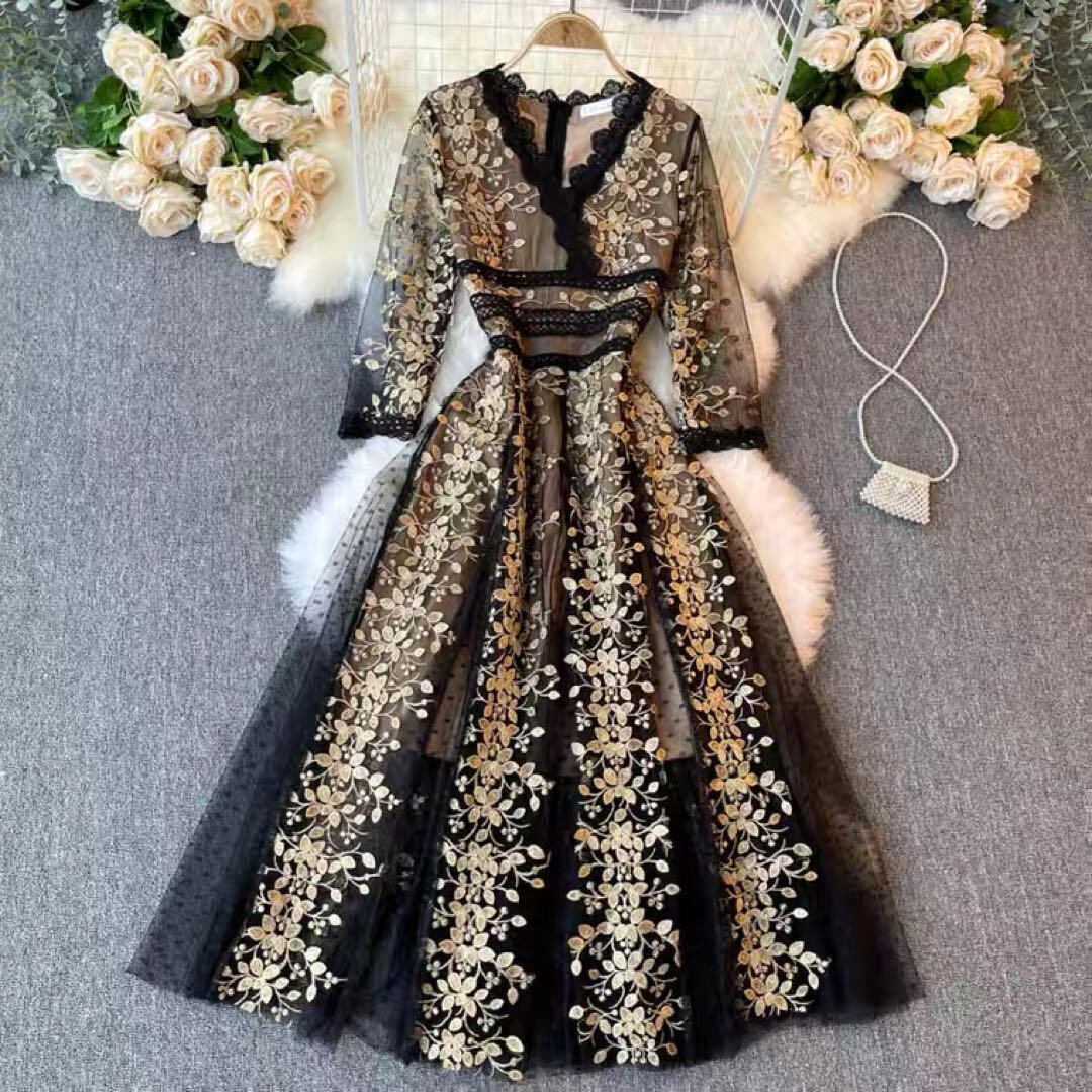 ☆★ 新品入荷 綺麗めコーデ❤️ロングワンピース レディース ドレス レース パーティー 長袖★☆