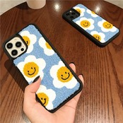 手触りの良いパイル生地にスマイルフラワーがデザインされたiPhoneケース♪