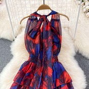 綺麗めワンピース❤ホルターネック バックレス リゾート ドレス ロング 花柄