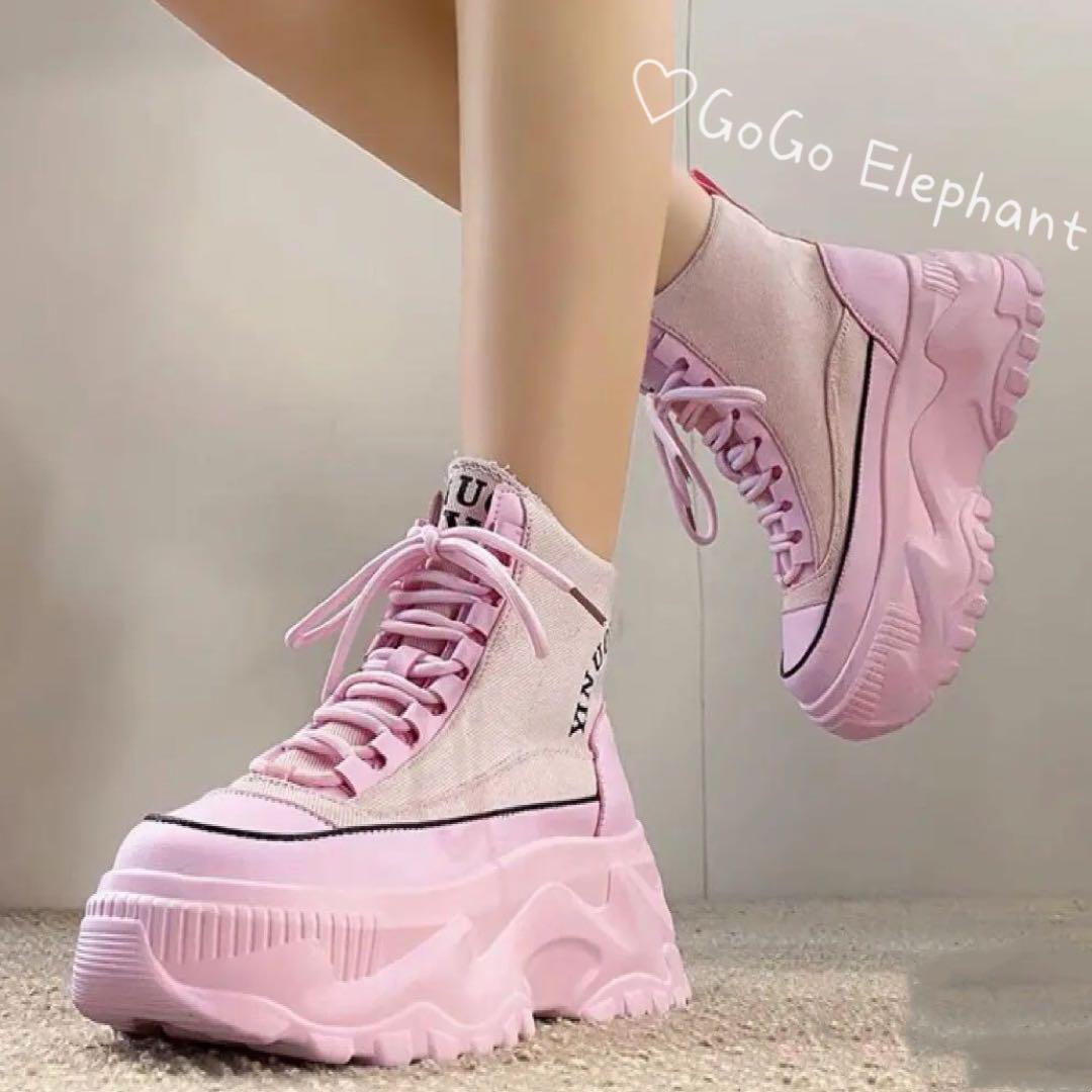 韓国デザイン♡ 厚底ハイカット スニーカー スポーツ 新品 美脚