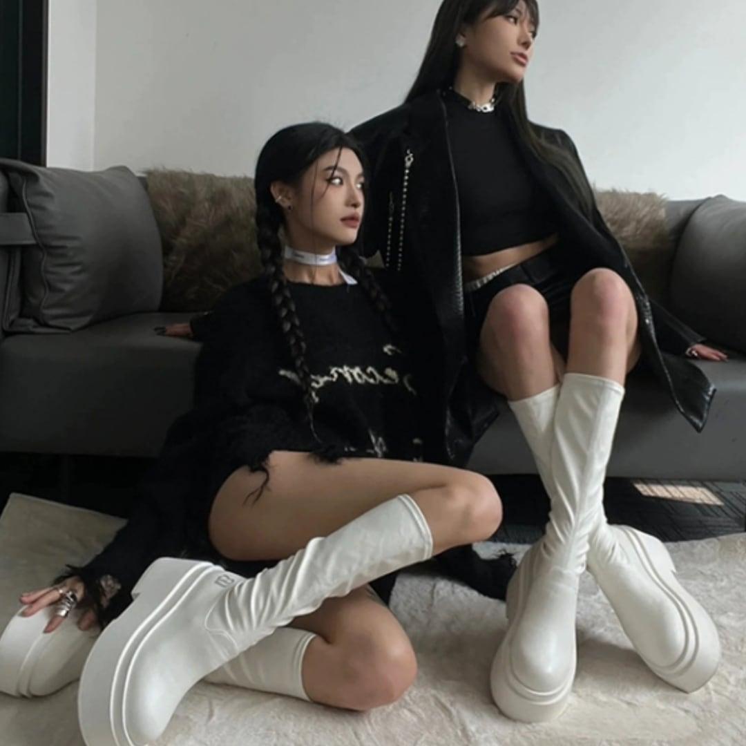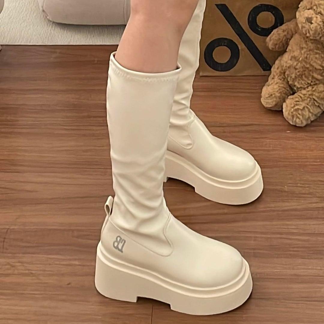 ☆★ 新品入荷 韓国デザイン♡ ふくらはぎをきゅっと引き締め♪ 厚底 ロングブーツ 美脚★☆