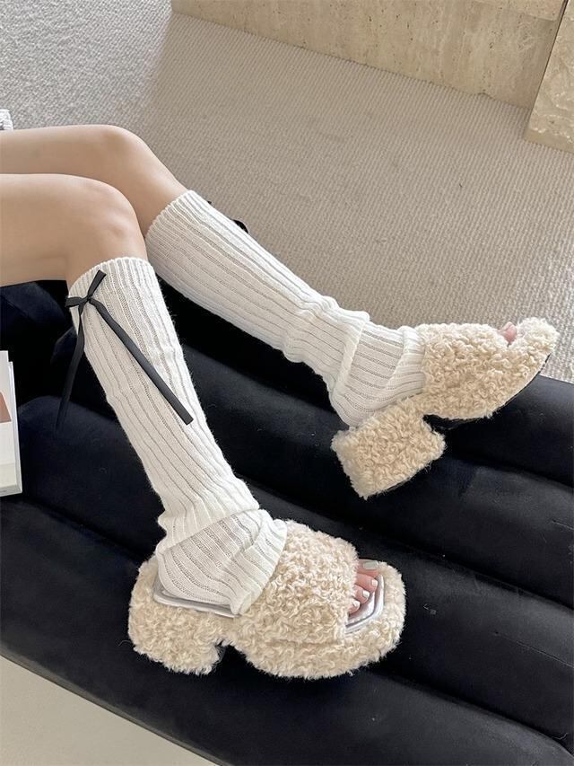 韓国♡ボアサンダル もこもこサンダル 太ヒール 厚底 ファーリーシューズ