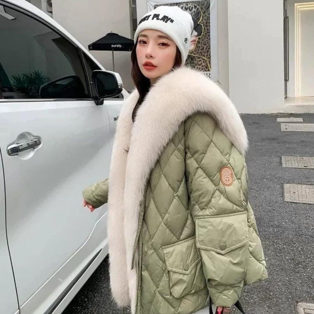 韓国デザイン♡ ファー取り外しでアレンジ自由自在♪ フェイクファー キルティング