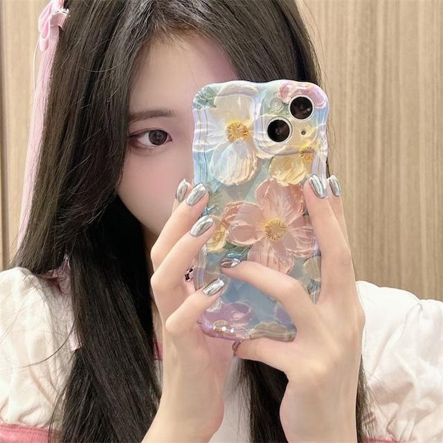韓国♡お花にうっとり一目惚れ◎フラワー 油絵風 光沢デザイン iphoneケース