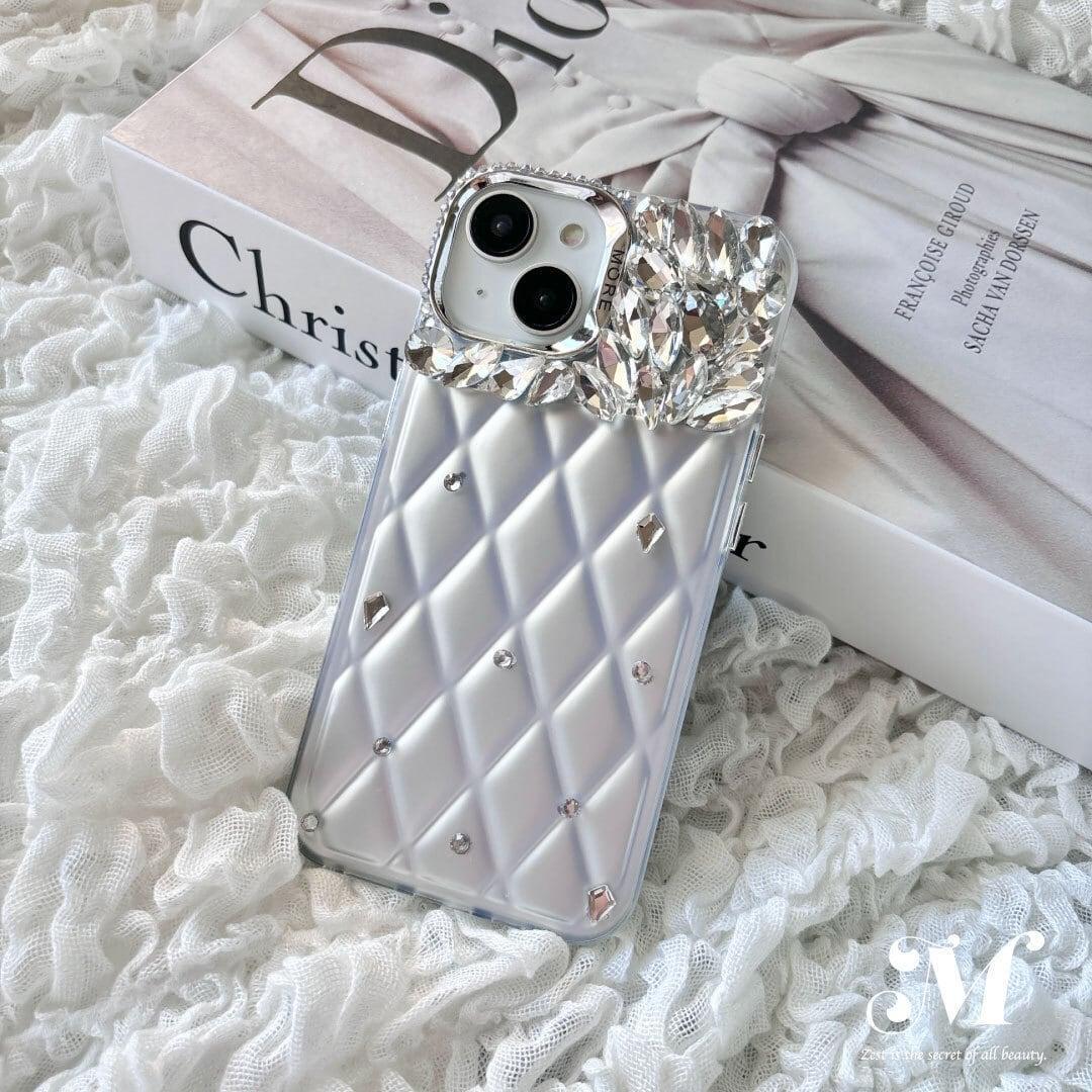 韓国デザイン♡キラキラ シルバーグレイ 宝石 キルティングiPhoneケース
