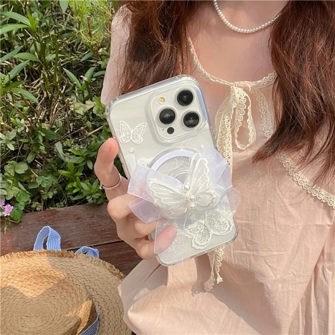 韓国♡高級感 蝶々 ♡乙女可愛い マグネット グリップ 付き iphoneケース