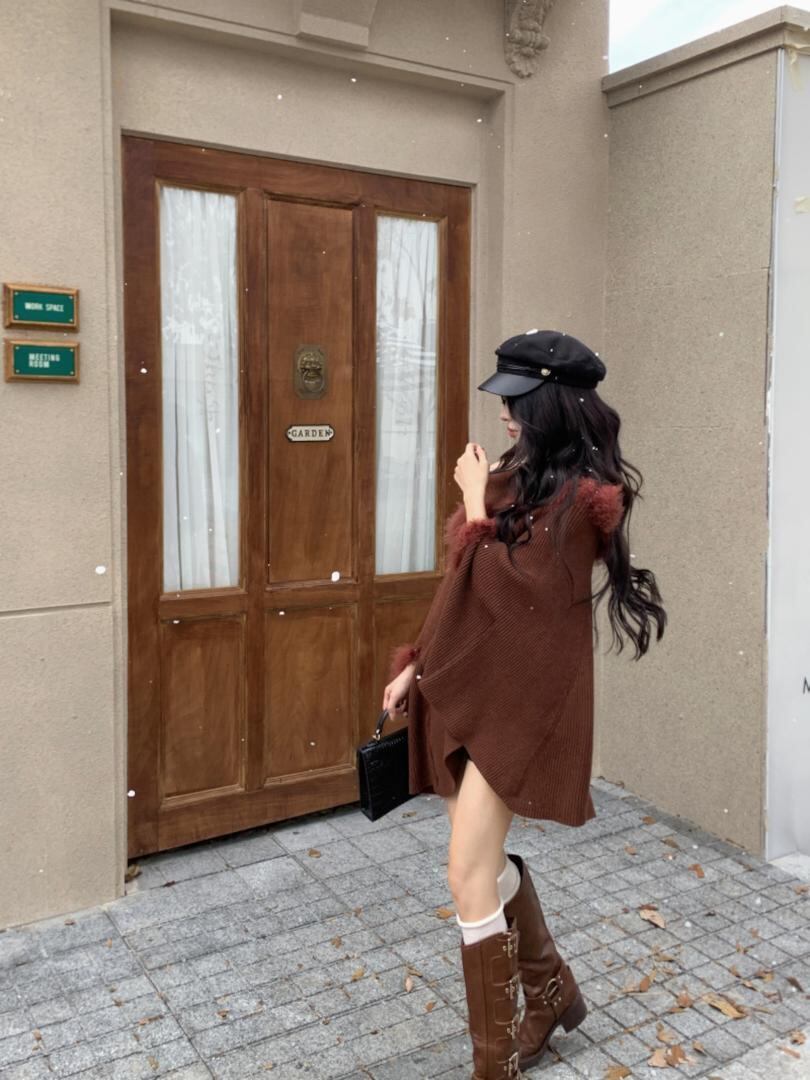☆★ 新品入荷 韓国❤️オフショルダ ファーコート アウター コート マント 大人綺麗め 女子