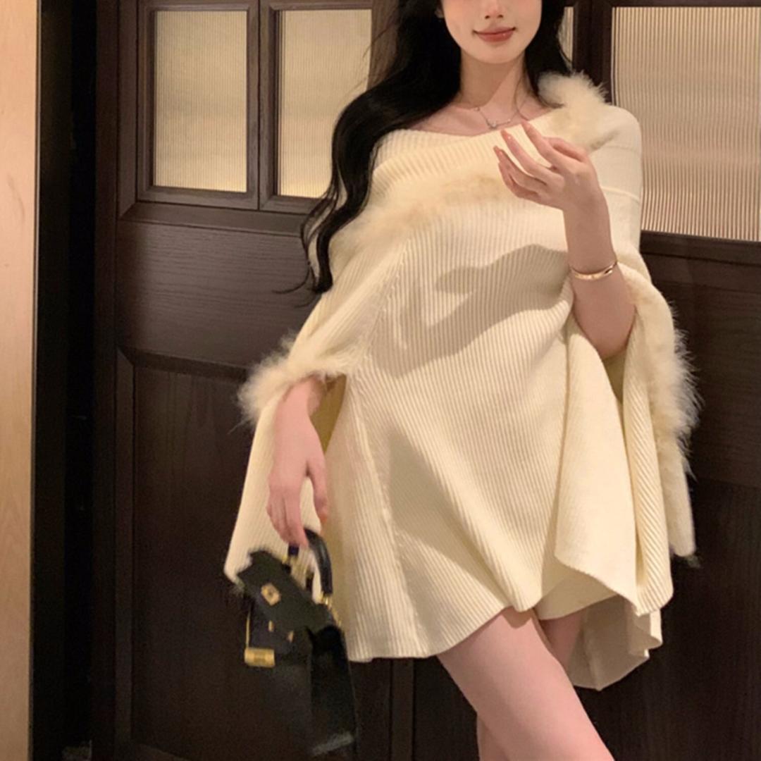 韓国❤️オフショルダ ファーコート アウター コート マント 大人綺麗め 女子