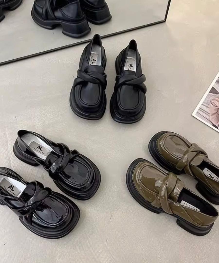韓国♡モダン♪ ツイスト ローファー 脚長 おしゃれ 履きやすい グリーン