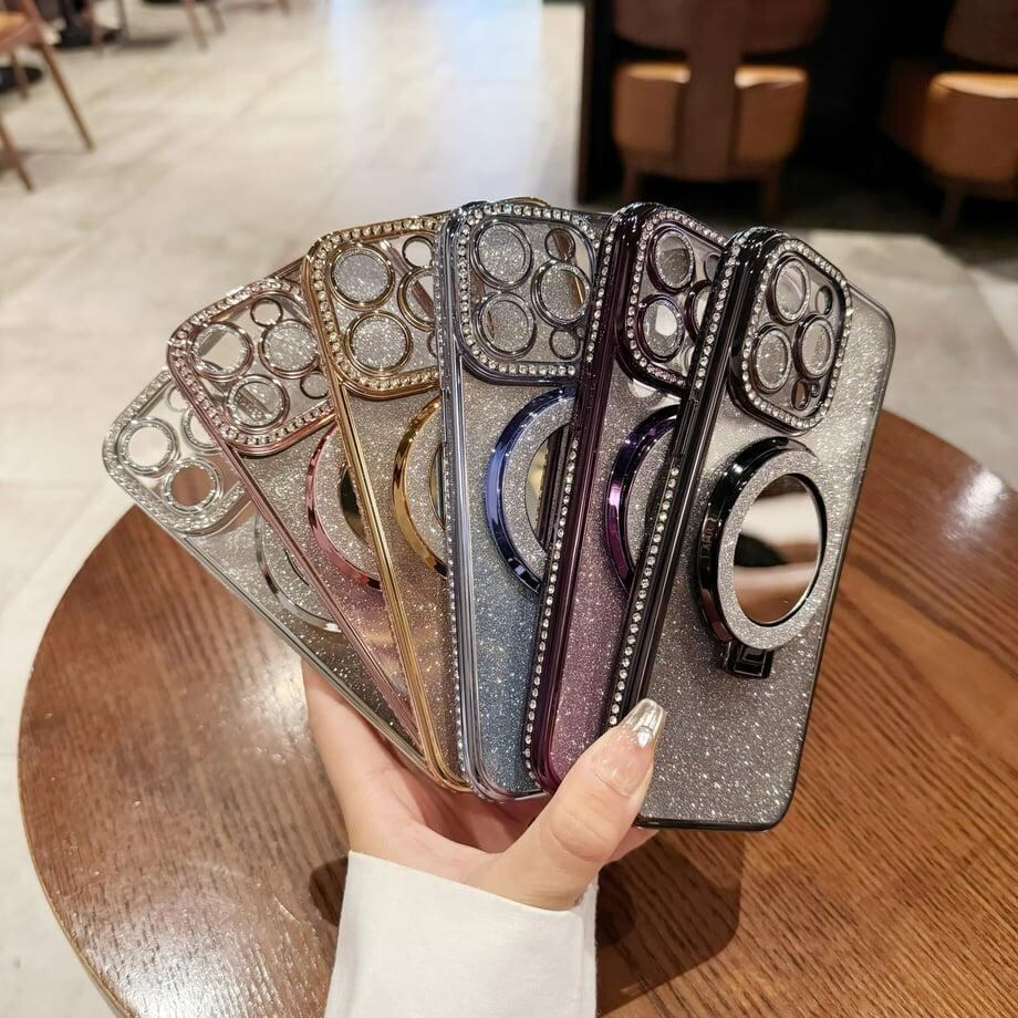 ☆★ 新品入荷 韓国♡高級感 きらきら 鏡付 リングスタンド 綺麗め iphoneケース 多機能