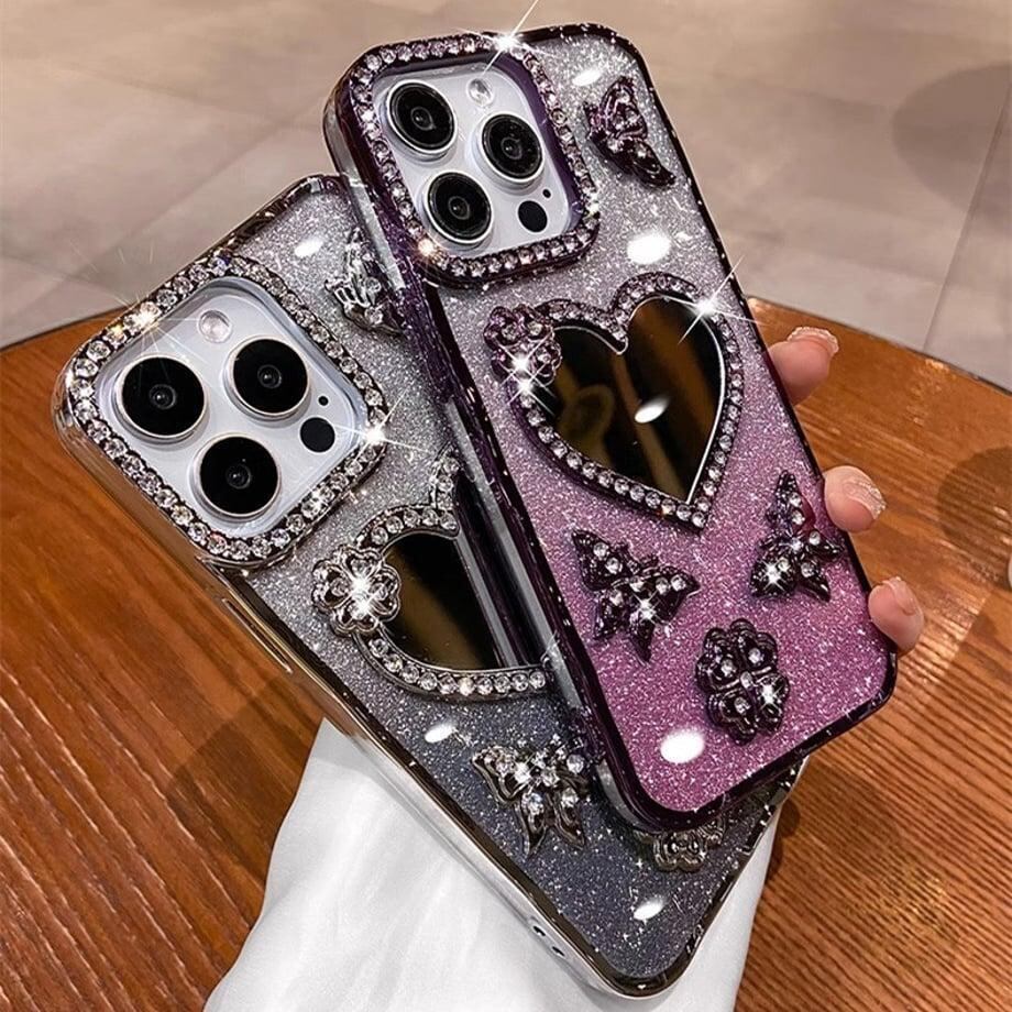 ☆★ 新品入荷 韓国♡高級感 きらきら 宝石箱 鏡付 綺麗め iphoneケース 蝶々 ハート