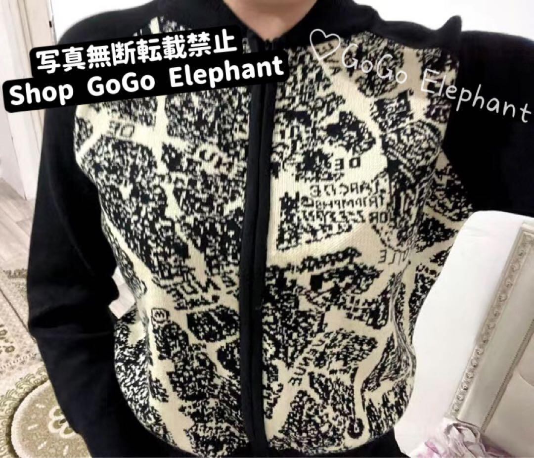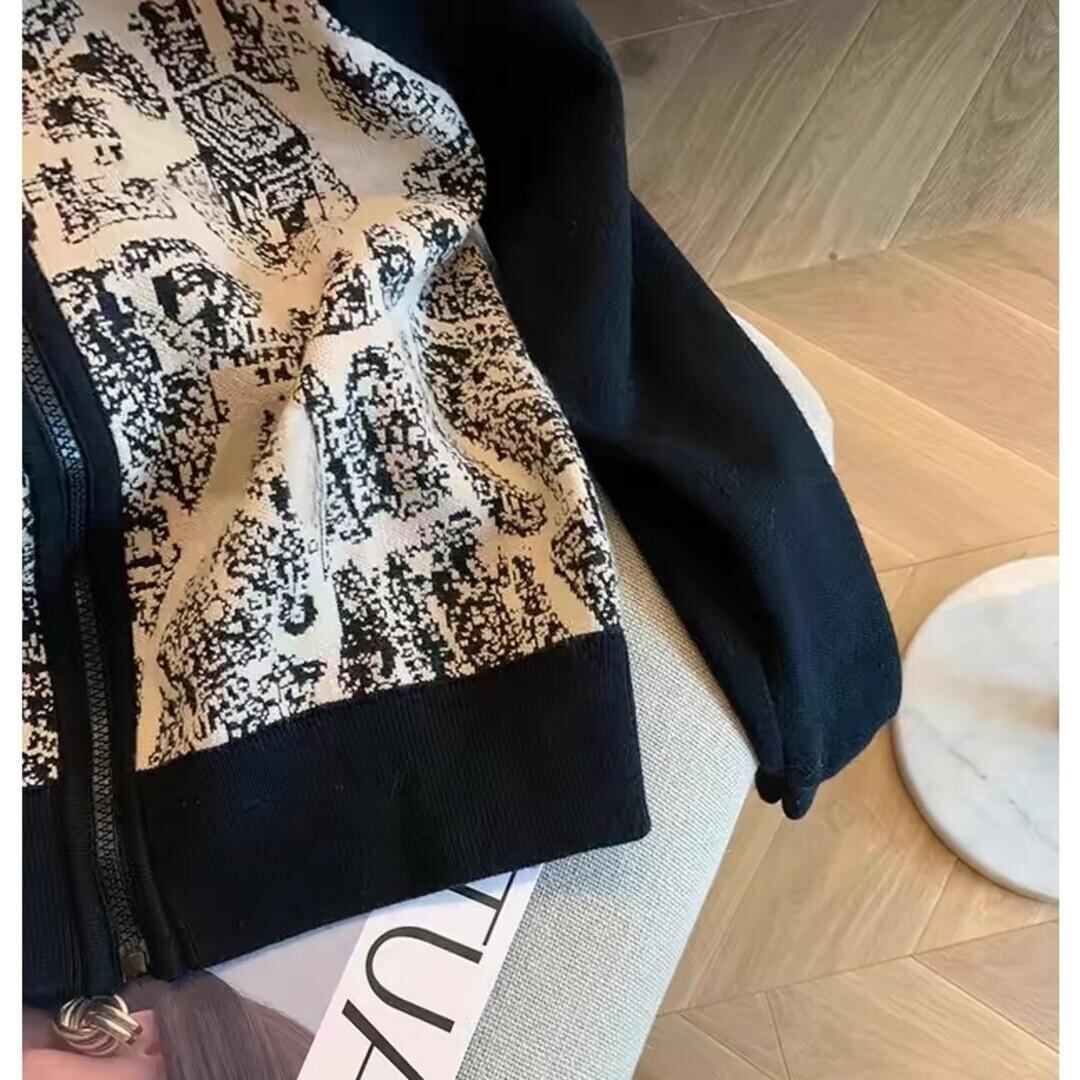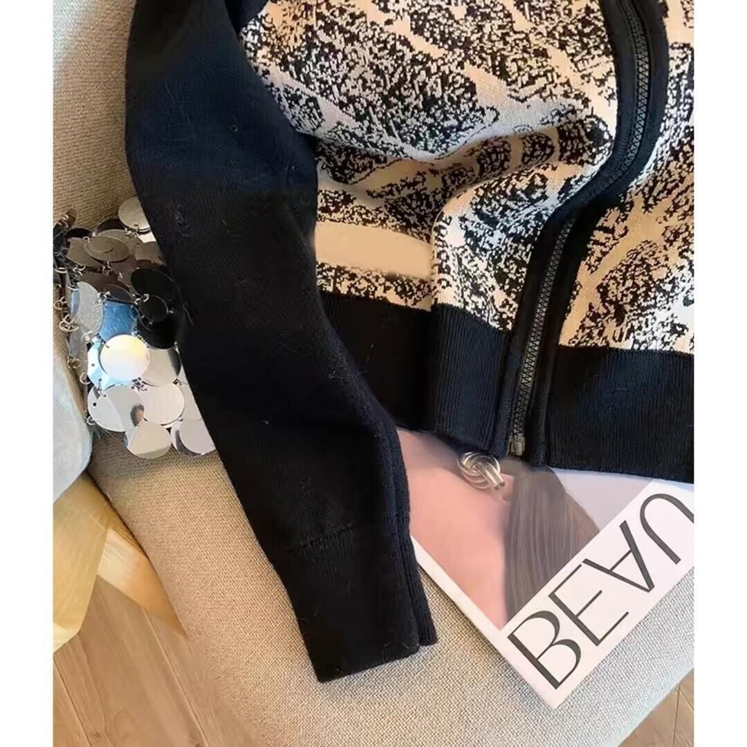 ☆★ 新品入荷 韓国♡モノクロ ヨーロピアン 柄 切り替え ニット ジャケット アウター 高級感 ★☆