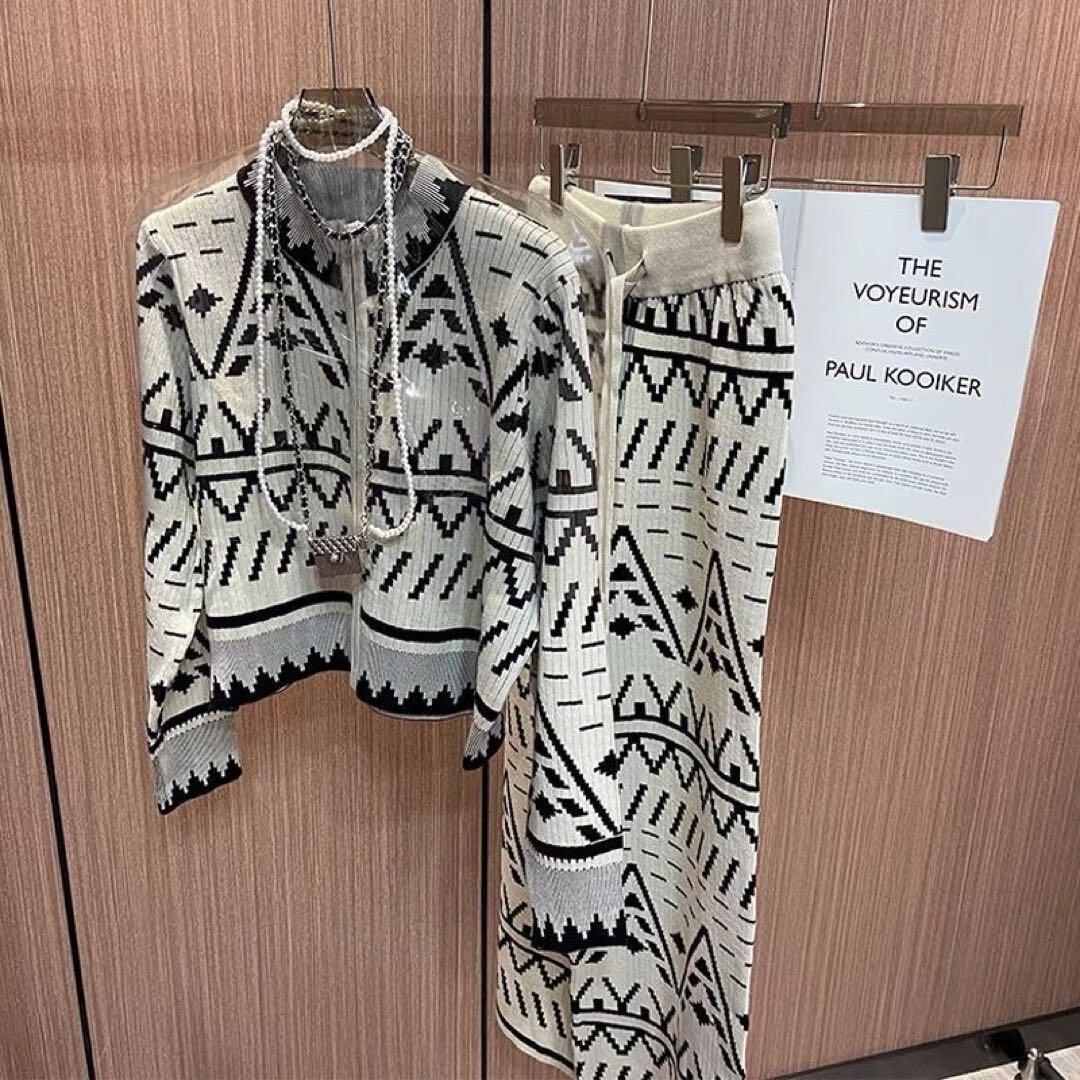 ☆★ 新品入荷 韓国♡モダン 幾何学模様♪ モノクロ ジャケット パンツ セットアップ おしゃれ スウェット ジャージ