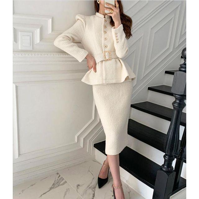 ツーピース 上下セット ボトム ガーリー #カジュアル #通勤 #韓国 韓国ガーリー フレンチガーリー 韓国っぽ 色っぽ 可愛い ガーリー セットアップ #おしゃれ #渋谷#原宿 #大人女子 #かわいい #大きいサイズ ツイード ジャケット スカート