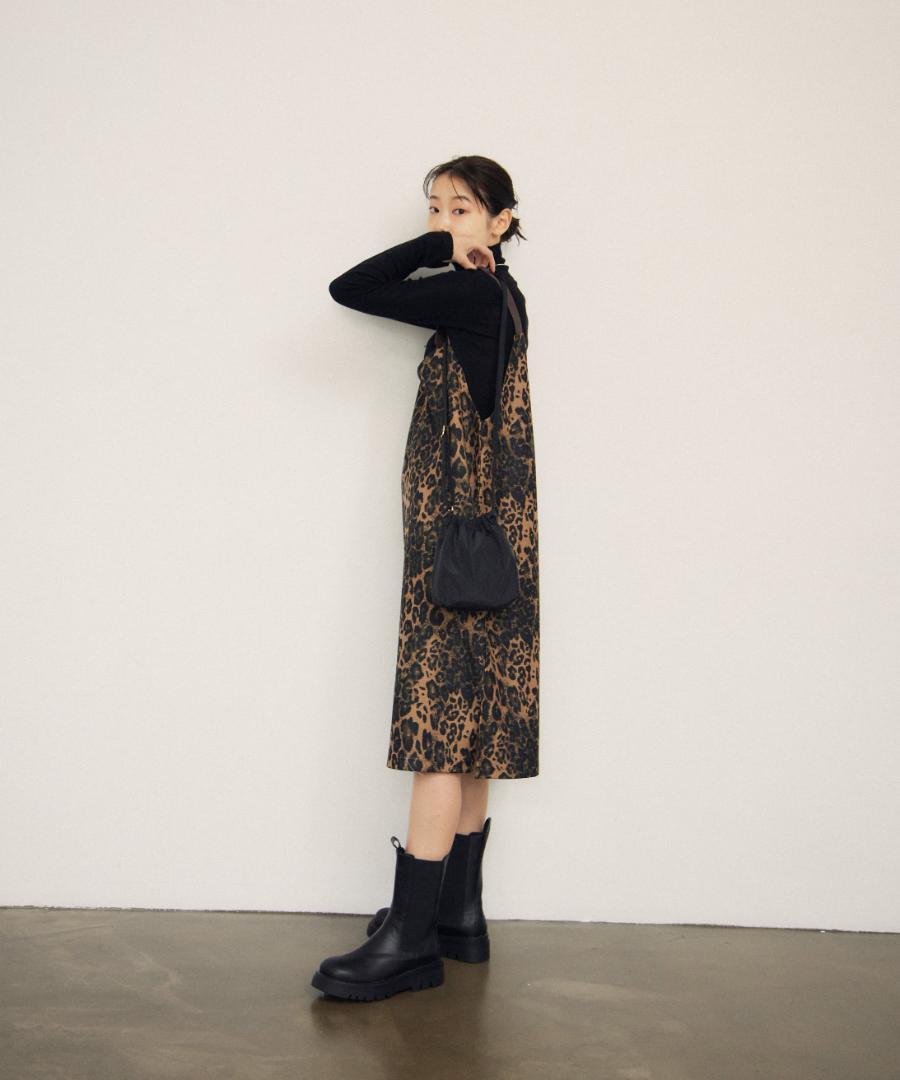 韓国♡大人女子 華奢見せ♪ レザー ストラップ レオパード キャミ ワンピース