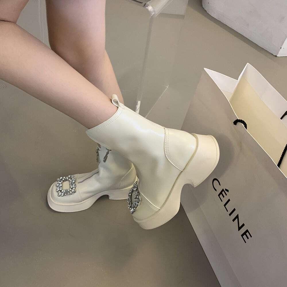 韓国♡キラキラ♪ スクエア ビジュー 高級感 厚底 ブーツ 美脚 エレガント