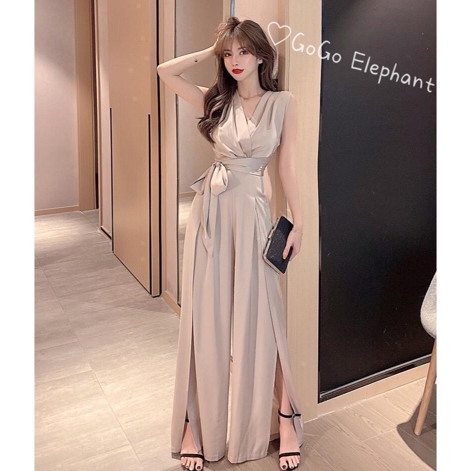 韓国デザイン♡優雅♡ なめらか素材 ワイドパンツドレス オールインワン