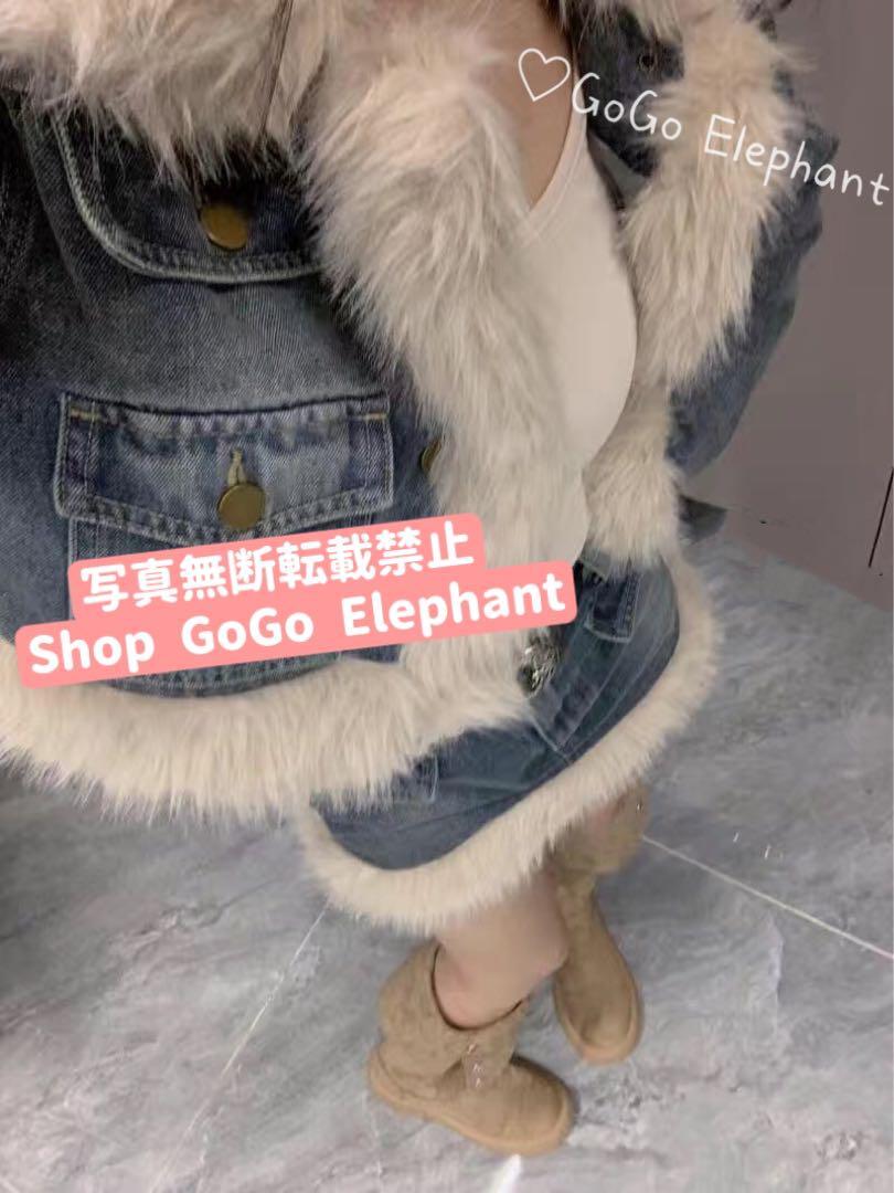☆★ 新品入荷 韓国♡甘辛ミックス♪ ふわふわファー付きデニムセットアップ ジャケット スカート ♡