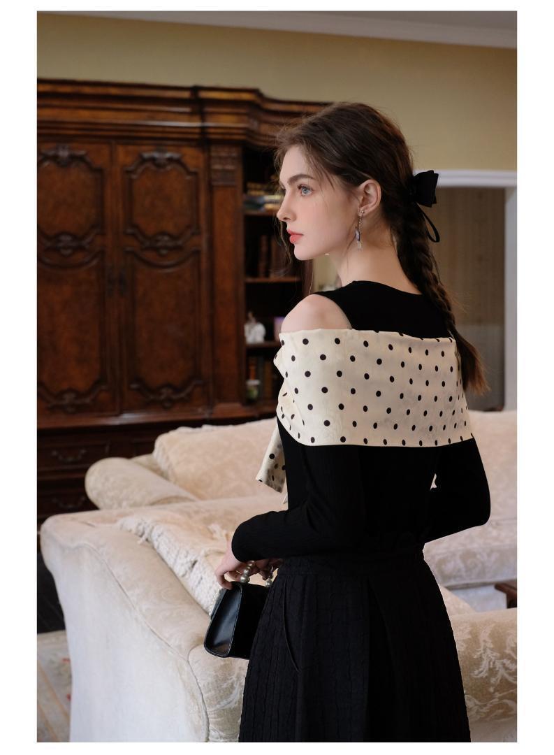 ☆★ 新品入荷 綺麗め♡フレンチ美人トップス♪ ニット セーター スカート 着痩せ リボンドット ♡