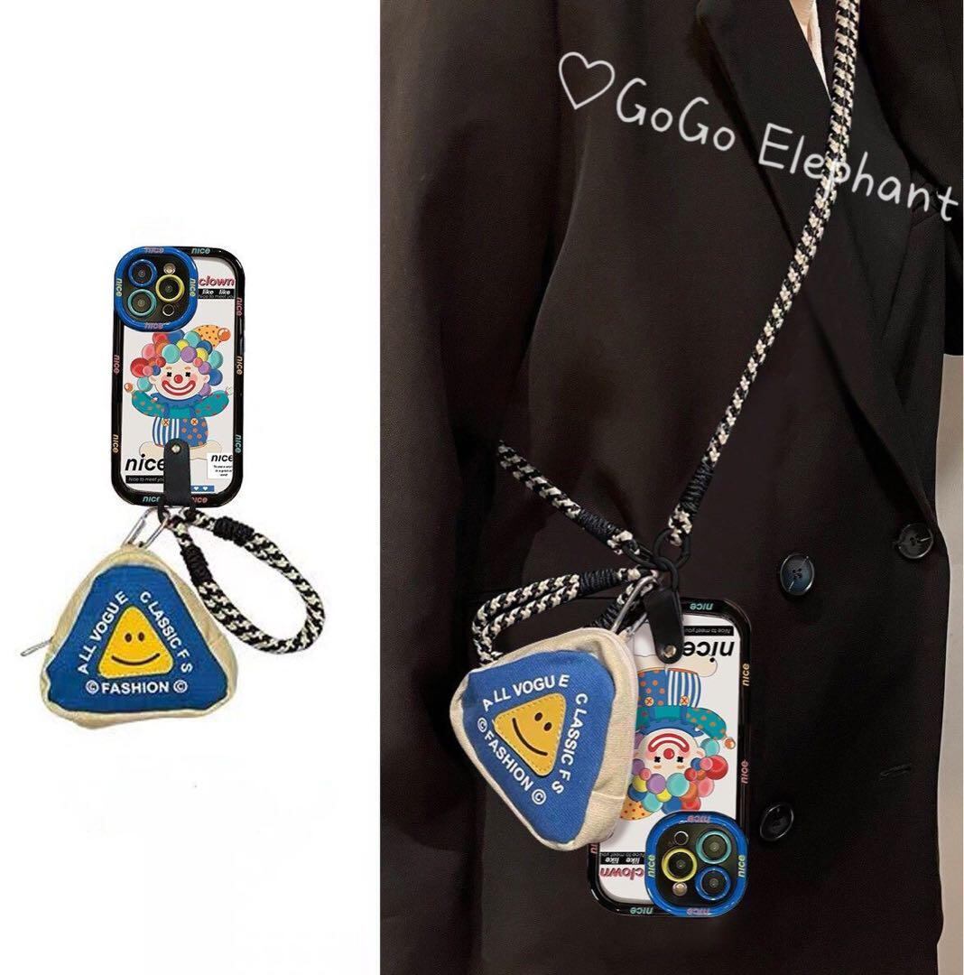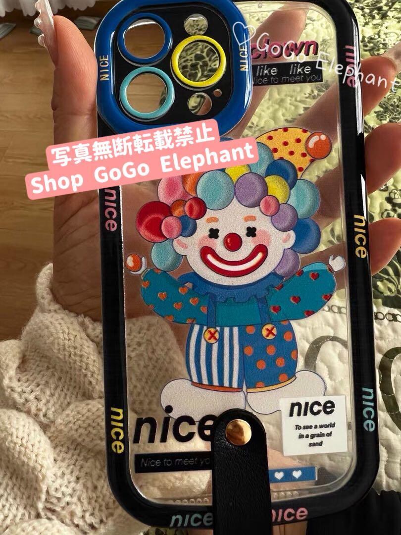 ☆★韓国♡ポップな可愛いピエロ♪ 収納付き ハンドストラップ 肩掛け iphone16ケース