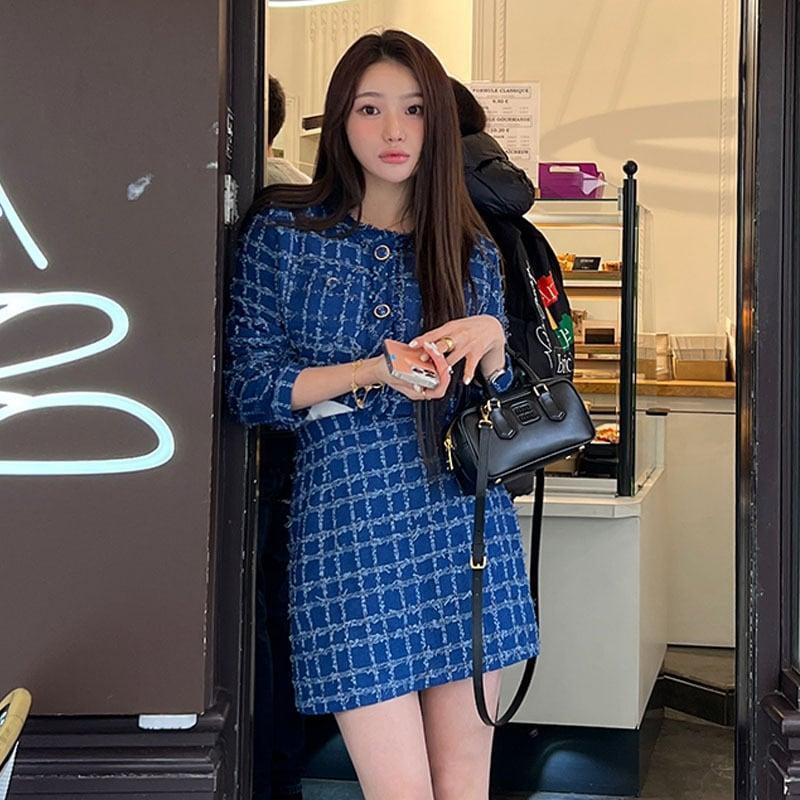 韓国デザインのツイードジャケットとミニスカートのセットアップ♡