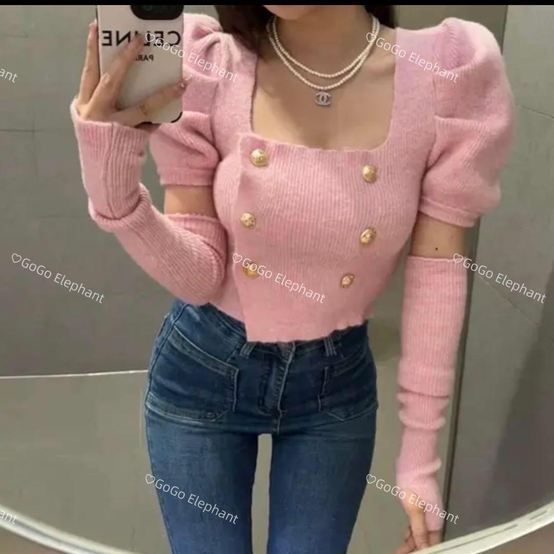 韓国っぽ♡大人綺麗めコーデ アーム付き パフスリーブ ニット トップス おしゃれ