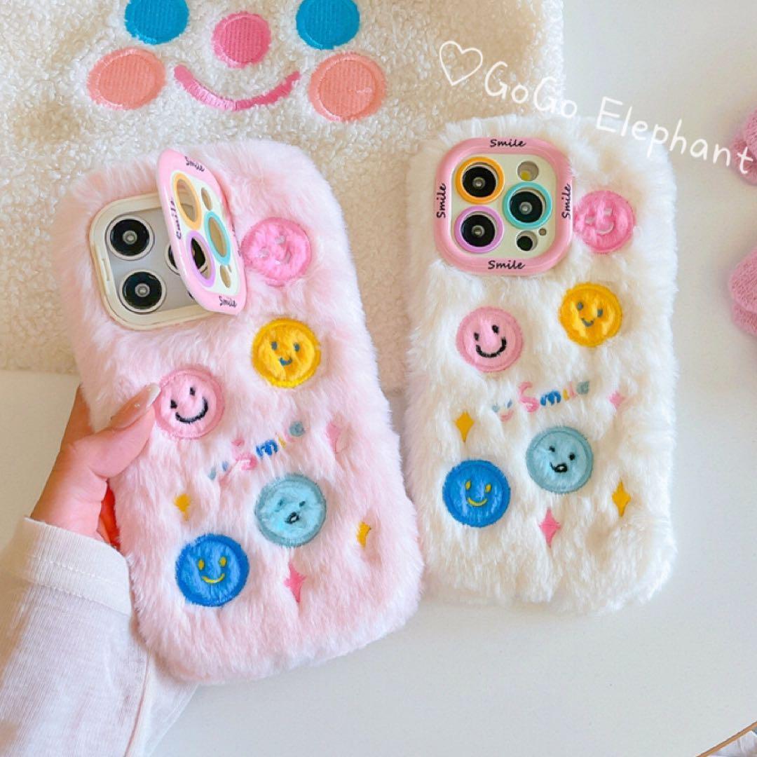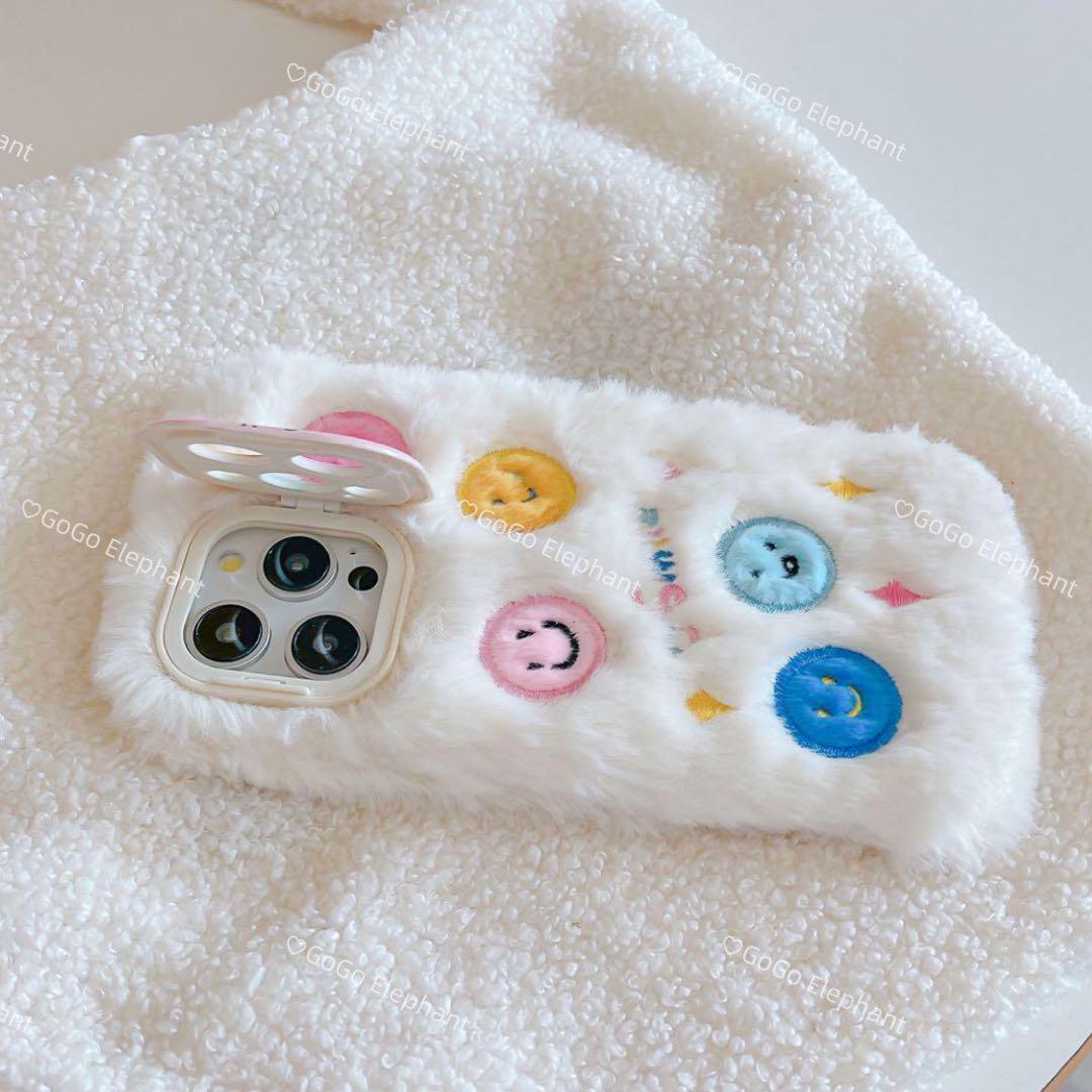 ☆★ 新品入荷 韓国♡ゆめかわ♡可愛い スマイリー ふわふわ iphone16 ケース スマホ カバー スタンド ♡