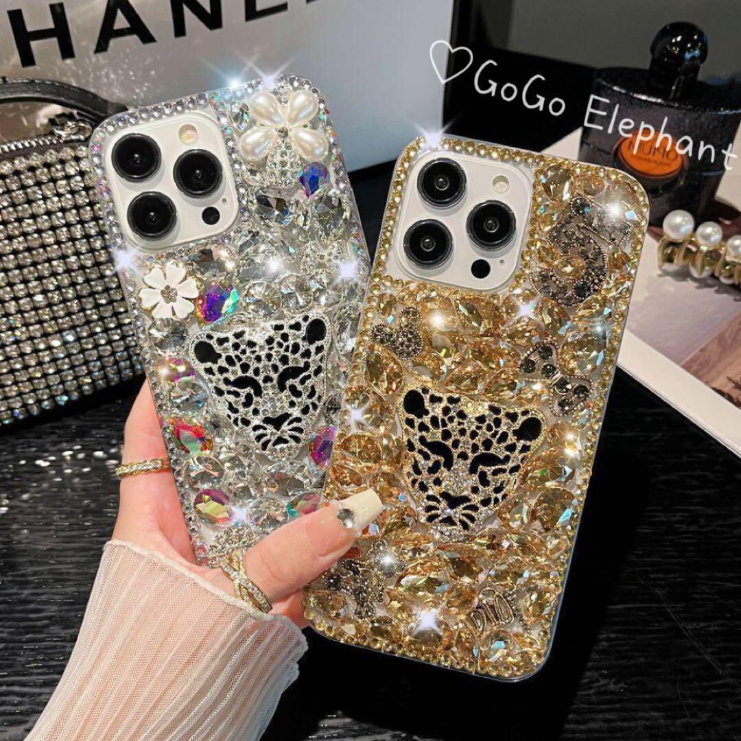 韓国♡超豪華 ♡ 映え確定 キラキラ 宝石箱 ヒョウ柄 iphone16 ケース