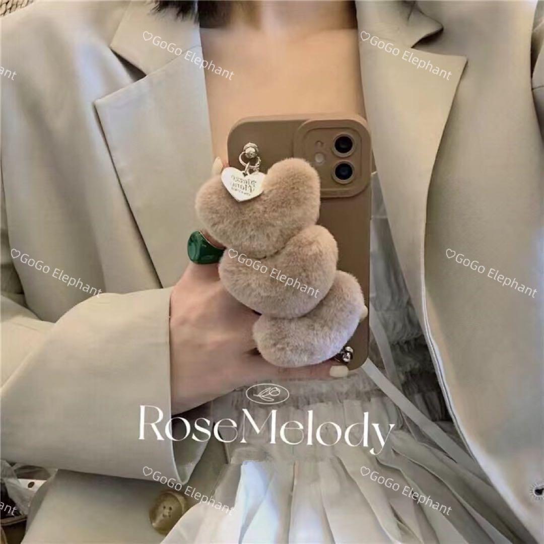 韓国♡癒される手触り♪ もこもこ ハートチェーン付き♪ iphoneケース